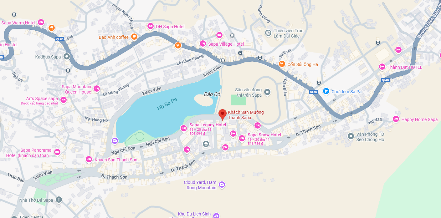 Chỉ cách Thị trấn Sapa, Nhà thờ Đá và Chợ đêm 7 phút đi bộ, Muong Thanh Sapa Hotel cung cấp các phòng hiện đại đi kèm Wi-Fi miễn phí. Khách sạn cũng có spa thư giãn, nhà hàng va quầy bar. Đặc trưng với sàn gỗ, toàn bộ phòng tại đây đều có cửa sổ nhìn ra Núi Hàm Rồng và Hồ Sapa. Các phòng được trang bị truyền hình cáp màn hình LCD và ấm đun nước điện. Phòng tắm riêng có bồn tắm và máy sấy tóc. Một số phòng có ban công. Khách sạn cung cấp 1 phòng không gây dị ứng. Các liệu pháp chăm sóc và mát-xa có tại spa của Myong Thanh Sapa. Khách sạn cũng cung cấp cả bồn tắm thảo dược. Những tiện nghi thư giãn khác bao gồm bể sục và phòng xông hơi ướt. Muong Thanh Sapa Hotel cách Bản Cát Cát 3 km và cách Bản Tả Van, Bản Tả Phìn cũng như Thác Bạc 12 km. Cổng Trời cách nơi này 15 km. Khách mất khoảng 1 tiếng lái xe là đến được Ga Lào Cai. Núi Hàm Rồng cách nơi nghỉ này 10 phút đi bộ. Nhà hàng của khách sạn phục vụ các món ăn Âu và Á. Đồ uống giải khát có cồn và không cồn được cung cấp tại quầy bar.