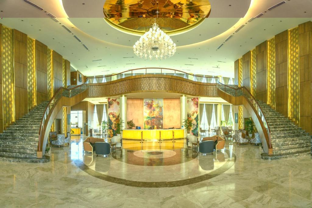 Vị trí đắc địa: Wyndham Grand KN Paradise Cam Ranh tại Cam Ranh có khu vực bãi biển riêng, hồ bơi vô cực, tiện nghi spa, trung tâm thể dục và khu vườn tươi tốt. Du khách có thể tận hưởng sân hiên, nhà hàng, quầy bar và WiFi miễn phí trong toàn bộ khuôn viên. Chỗ ở thoải mái: Các phòng có máy lạnh, phòng tắm riêng, tầm nhìn ra vườn hoặc biển và các tiện nghi hiện đại như minibar và TV màn hình phẳng. Phòng gia đình và hồ bơi riêng phục vụ cho tất cả du khách, đảm bảo một kỳ nghỉ thoải mái. Trải nghiệm ăn uống: Nhà hàng thân thiện với gia đình phục vụ các món ăn Trung Quốc, Mỹ, Hàn Quốc, Việt Nam và quốc tế. Các lựa chọn bữa sáng bao gồm các món ăn lục địa, Mỹ, tự chọn và chay, đáp ứng nhiều nhu cầu ăn kiêng khác nhau. Hoạt động giải trí: Du khách có thể tận hưởng hồ bơi, trung tâm thể dục và lò sưởi ngoài trời. Các hoạt động bổ sung bao gồm các buổi đi bar, đêm chiếu phim và lớp học nấu ăn, mang đến sự giải trí và bổ ích. Các điểm tham quan lân cận: Cách Sân bay Tuy Hòa 93 dặm, khách sạn nằm gần Tắm bùn Trăm Trứng (22 dặm) và Bảo tàng Alexandre Yersin (26 dặm). Các điểm tham quan khác bao gồm Tháp Trầm Hương và Nhà thờ Nha Trang, mỗi điểm đều cách đó 23 km.